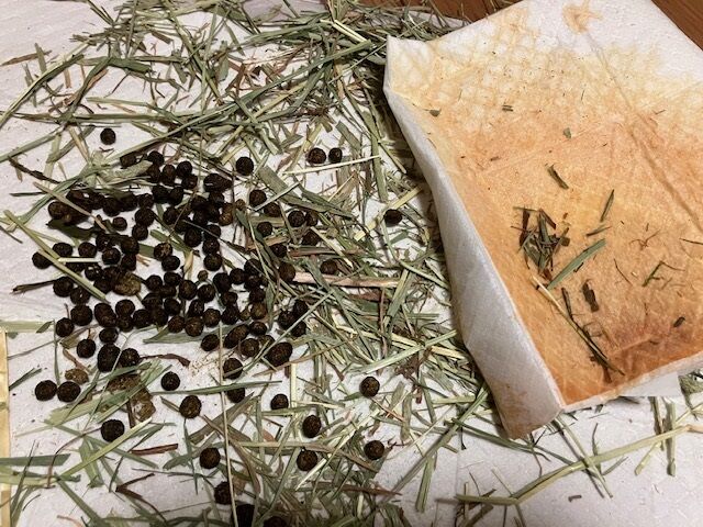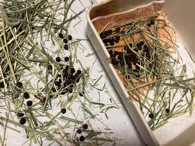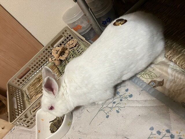 その後、残ってたご飯も食べて、おやつの牧草ペレットにも食いつく