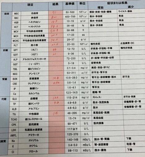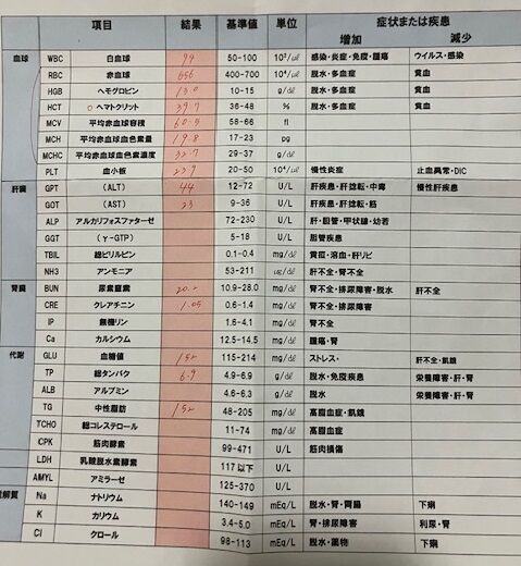血液検査はやや上振れしていますが、ストレス起因との判断