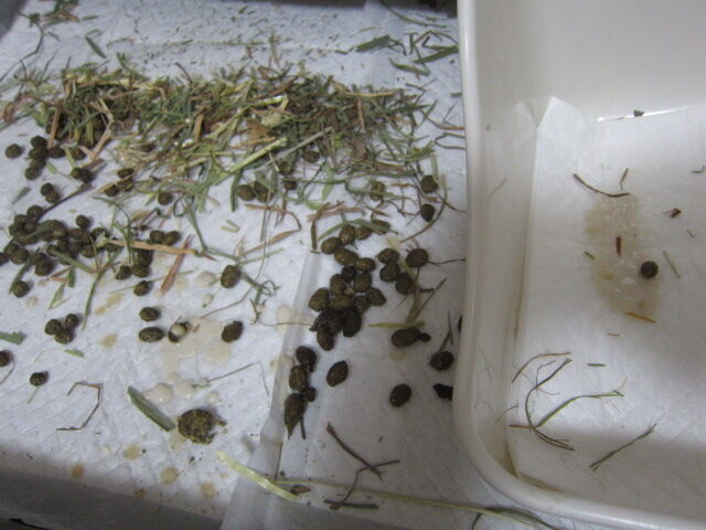 13日(金)の朝、前夜の就寝前のおやつ代わり(チモシーの恵)が数個残ってて