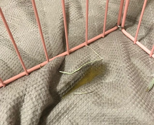 1月28日日曜の部屋んぽで、また出入口の赤マットにお湿り跡発見。