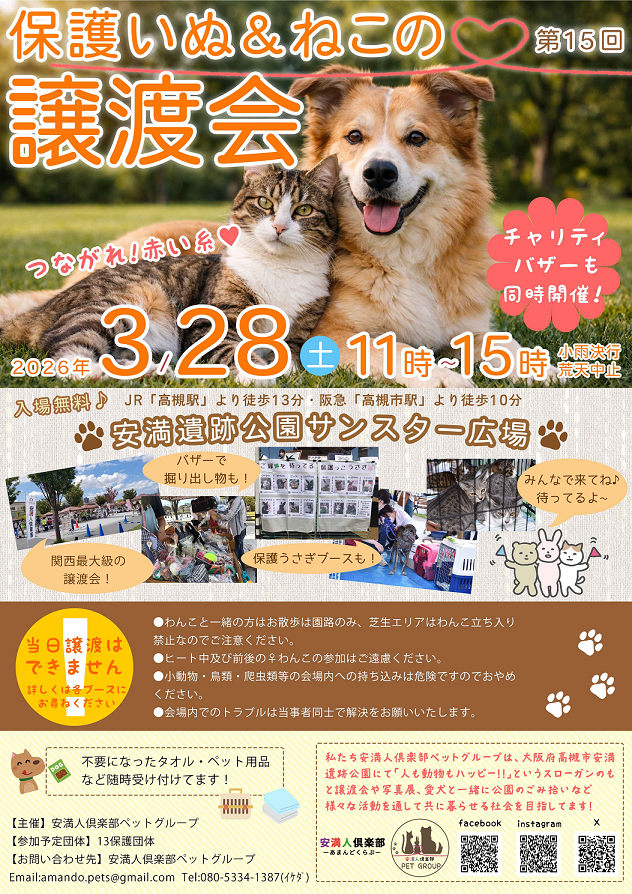 第15回保護いぬ&ねこの譲渡会(安満人倶楽部ペットグループ)