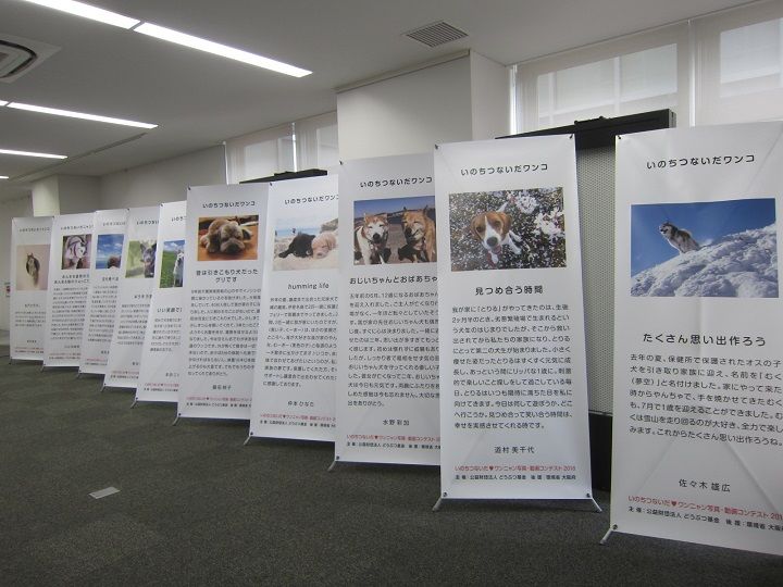 ワンニャン写真コンテスト」授賞作品のパネルがずらずらと…