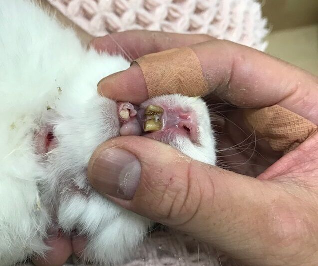 ・噛み合わせの悪い=不正咬合(病気です)のうさぎは定期的に病院で処置が必要。