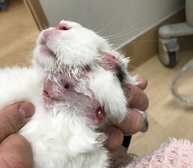 かさぶた取れて膿が見えてる箇所でも触られるのすごく嫌がる。