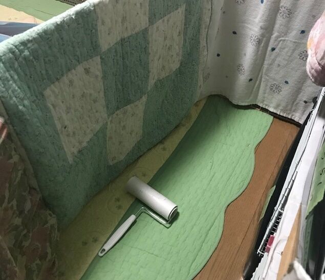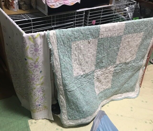 目隠しやクーラー扇風機の風対策としてサークル柵に布類(下方に紹介)です